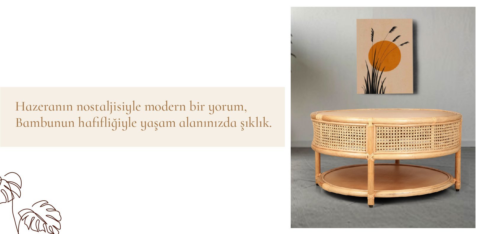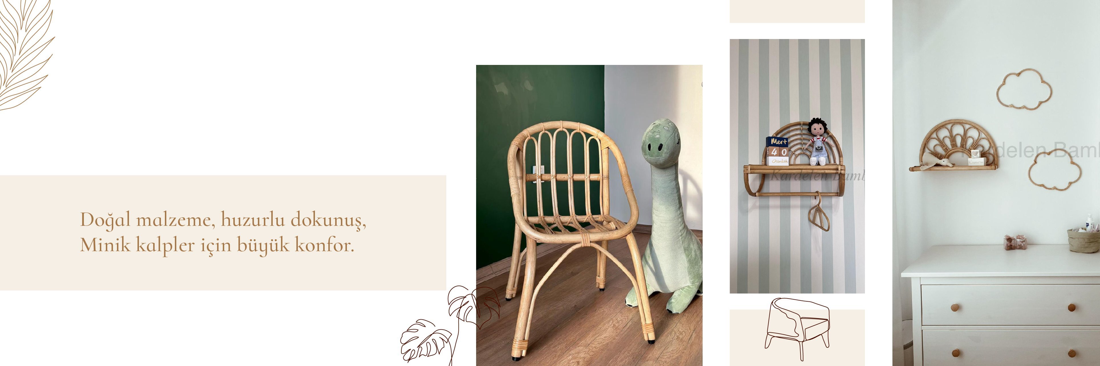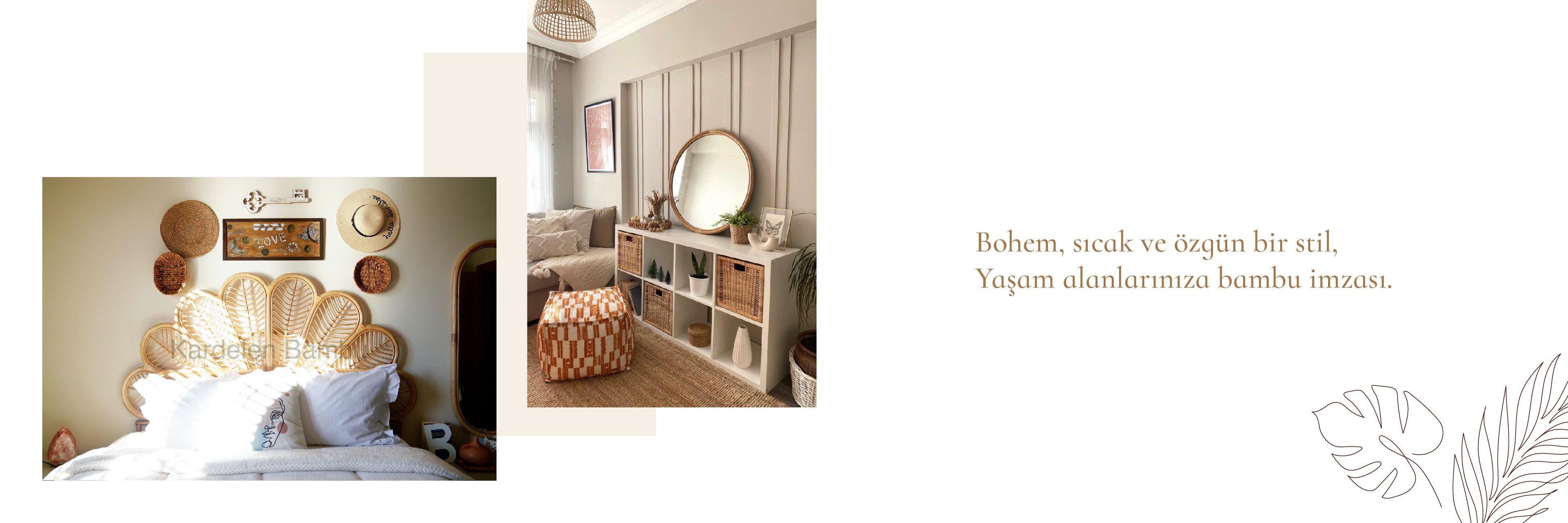 Bambu (Rattan) Askılı Duvar Rafı (50cm)